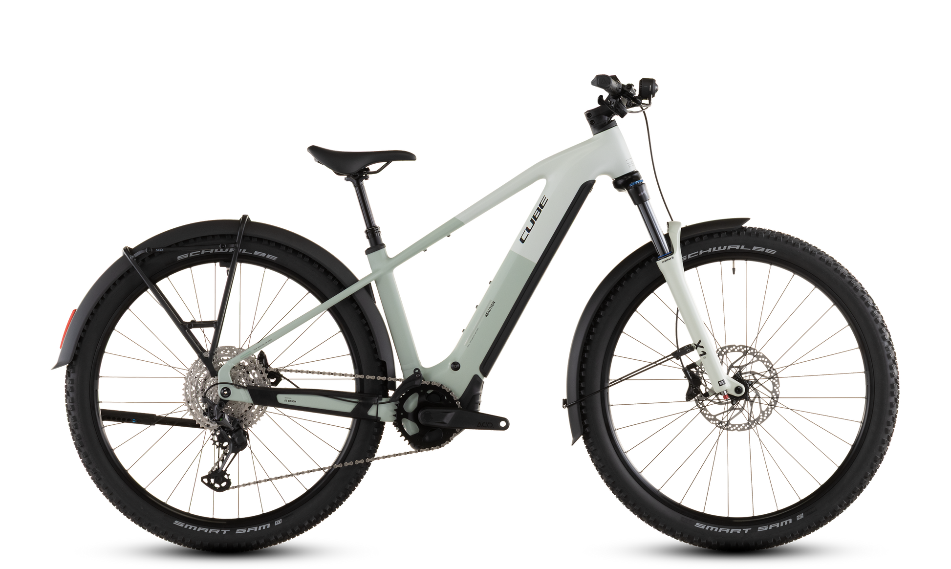 Das Beste aus zwei Welten: Das Reaction Hybrid Pro FE kombiniert die Vielseitigkeit eines voll ausgestatteten Tourers mit der Robustheit eines Mountainbikes und dem Support durch einen E-Motor. Dabei hat das Bike neben Schutzblechen, Gepäckträger, Seitenständer und Lichtern noch weitere Highlights auf Lager. Dank dem leistungsstarken Bosch CX Motor und 800 Wh starken Akku sind jede Menge Power und Reichweite garantiert, und zwar auf jeder Route, ob über Asphalt oder im Gelände. Dabei macht die einfach bedienbare Shimano XT 12-fach Schaltung selbst steile Anstiege zum Kinderspiel. Bergab packen die hydraulischen 4-Kolben-Scheibenbremsen von Shimano kraftvoll zu und verzögern die griffigen Schwalbe 2.6 Zoll Reifen zuverlässig und sicher. Für eine Extraportion Fahrkomfort und Kontrolle auf ruppigeren Strecken haben wir eine Luftfedergabel mit 120 mm Federweg (100 mm bei kleinen Rahmengrößen und allen Tiefeinsteiger-Modellen) und eine versenkbare Sattelstütze verbaut.