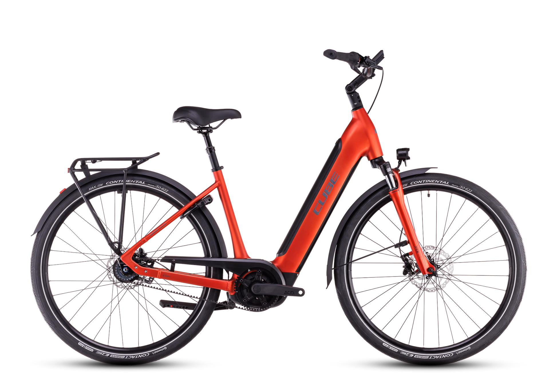 Die wichtigsten Aspekte bei der Entwicklung der CUBE Bikes: Innovation, Form und Funktion. Das bedeutet, dass wir unnötigen Schnickschnack konsequent weglassen. Ein sehr gutes Beispiel hierfür ist das Supreme RT Hybrid Deluxe EX 625, das mit einer Rücktrittbremse in Kombination mit leistungsstarken hydraulischen Scheibenbremsen auf die Straßen der Stadt kommt. Warum Rücktrittbremse? Weil sie praktisch und direkt per Pedal zu bedienen ist, was die Sicherheit erhöht. Ebenso praktisch sind der cleane, geräuscharm arbeitende, wartungarme Gates Zahnriemen, die Schutzbleche, die Lichtanlage, der Seitenständer und: der semi-integrierte Gepäckträger. Für ein Plus an Komfort sorgen die Federgabel und der verstellbare Vorbau – und natürlich die 8-Gang Nabenschaltung von Shimano in nahtloser Zusammenarbeit mit dem Bosch Active Plus Motor, den ein 625 Wh Akku zuverlässig vorwärtstreibt.