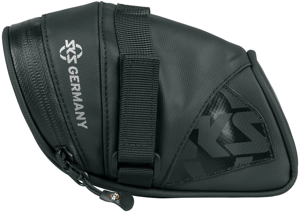Robust und strapazierfähig. Widerstandsfähige Materialien aus gummiertem, wasserabweisendem Gewebe machen die Fahrradtasche EXPLORER zu einem Muss für jeden Mountainbiker. Reflektierende Elemente sorgen für Sicherheit im Dunkeln. Sie bieten ausreichend Platz für Tools, Ersatzschlauch und sonstige Kleinigkeiten und überzeugen mit weiteren Features wie laminierten Reißverschlüssen mit ergonomischem Easy-Zip, praktischen Innentaschen oder dem orangefarbenen Innenfutter zum leichteren Finden der Utensilien.