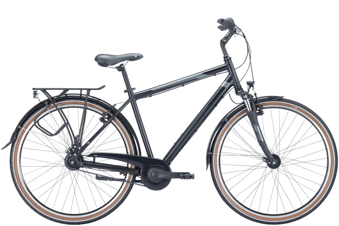 Das Pegasus Piazza 7 überzeugt durch eine robuste Ausstattung und komfortable Fahreigenschaften. Der Aluminiumrahmen 6061 sorgt für Stabilität, während die SR SUNTOUR CR-8V-P Gabel mit 40 mm Federweg eine angenehme Dämpfung bei Fahrten auf unebenen Straßen bietet. Mit der 7-Gang Nabenschaltung von SHIMANO Nexus und dem Revoshift Schalthebel lässt sich die Gangwahl präzise und komfortabel einstellen. V-Brakes von TEKTRO bieten zuverlässige Bremskraft, und die VEE TIRE City Cruz Bereifung in 28 Zoll sorgt für sicheren Grip und Fahrkomfort. Der Gepäckträger bietet ausreichend Stauraum für Ausflüge, und die LED-Leuchten mit Standlichtfunktion sorgen für Sichtbarkeit im Dunkeln. Ideal für den täglichen Stadtverkehr oder entspannte Ausfahrten.