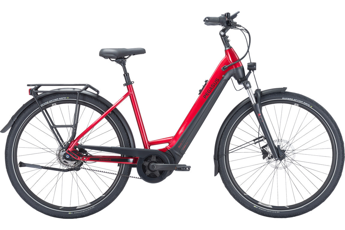 Das Pegasus PREMIO EVO 5R BELT ist ein vielseitiges E-Bike, das mit modernster Technik und hohem Komfort überzeugt. Der leistungsstarke Bosch Performance Line Motor (Smart System) mit bis zu 75 Nm Drehmoment bietet kraftvolle Unterstützung bis 25 km/h. Dank des Riemenantriebs (GATES CDX) ist das Bike besonders wartungsarm und langlebig. Ausgestattet mit einer SHIMANO Nexus 5-Gang Nabenschaltung, hydraulischen Scheibenbremsen von TEKTRO und einer SR SUNTOUR NVX-30 Federgabel (80 mm Federweg) sorgt das Rad für ein sicheres und komfortables Fahrgefühl, selbst auf unebenen Strecken. Die SUPERO Optima Safe Anti-Puncture Reifen bieten optimalen Pannenschutz und Griffigkeit. Mit Front- und Rückleuchten von FUXON, einem MonkeyLoad-Gepäckträger, Schutzblechen und einem stabilen HEBIE-Ständer ist das Bike alltagstauglich und bereit für Touren. Das Pegasus PREMIO EVO 5R BELT die perfekte Wahl für anspruchsvolle Pendler und Tourenfahrer.